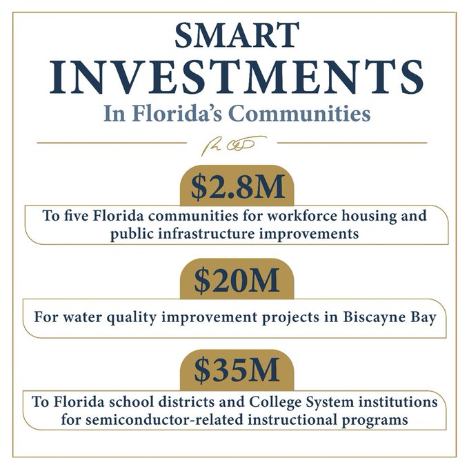 “Today’s awards improve infrastructure in Florida’s small cities to attract new businesses, expand development-ready infrastructure, and support workforce housing,” said Governor Ron DeSantis. “Through investments like this, we are strengthening future opportunities for Florida’s rural communities and the families that live there.”